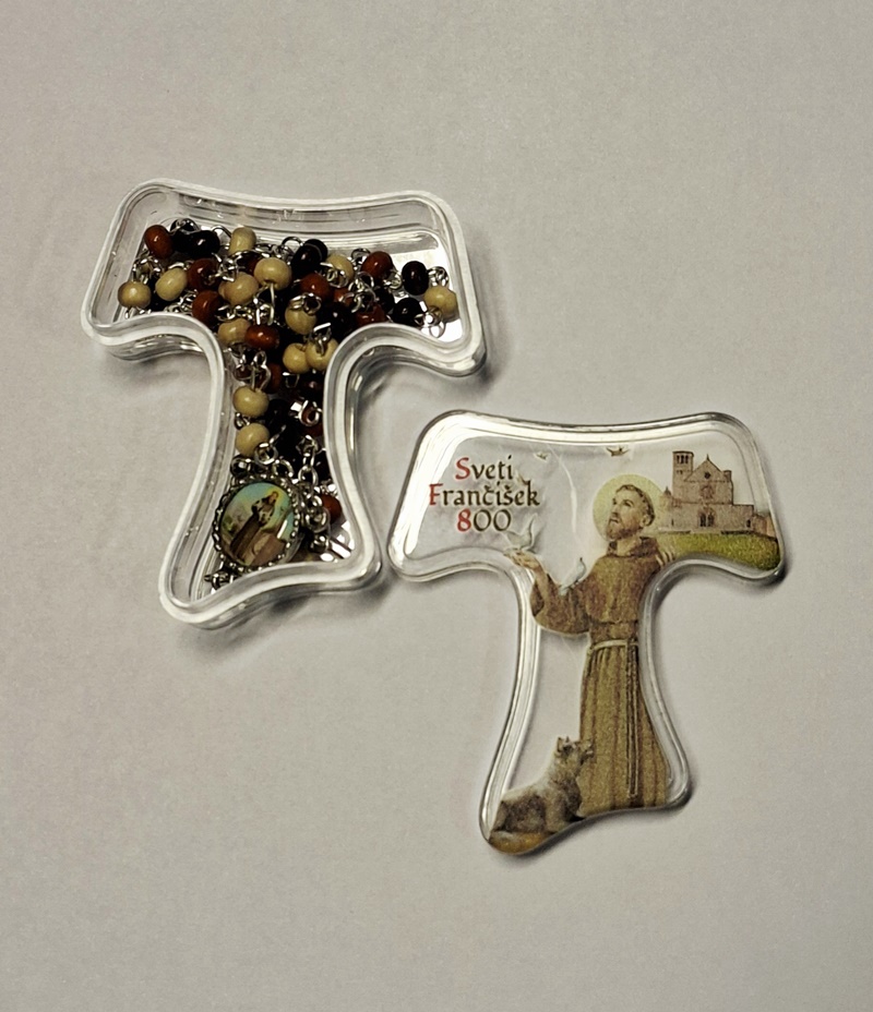 FRANČIŠKOV ROŽNI VENEC v škatlici v obliki križa Tav