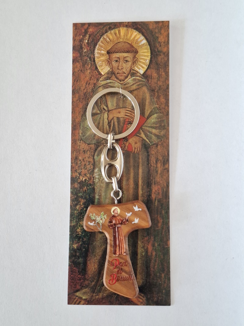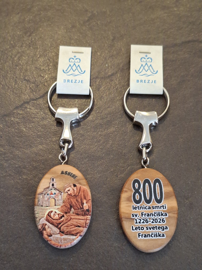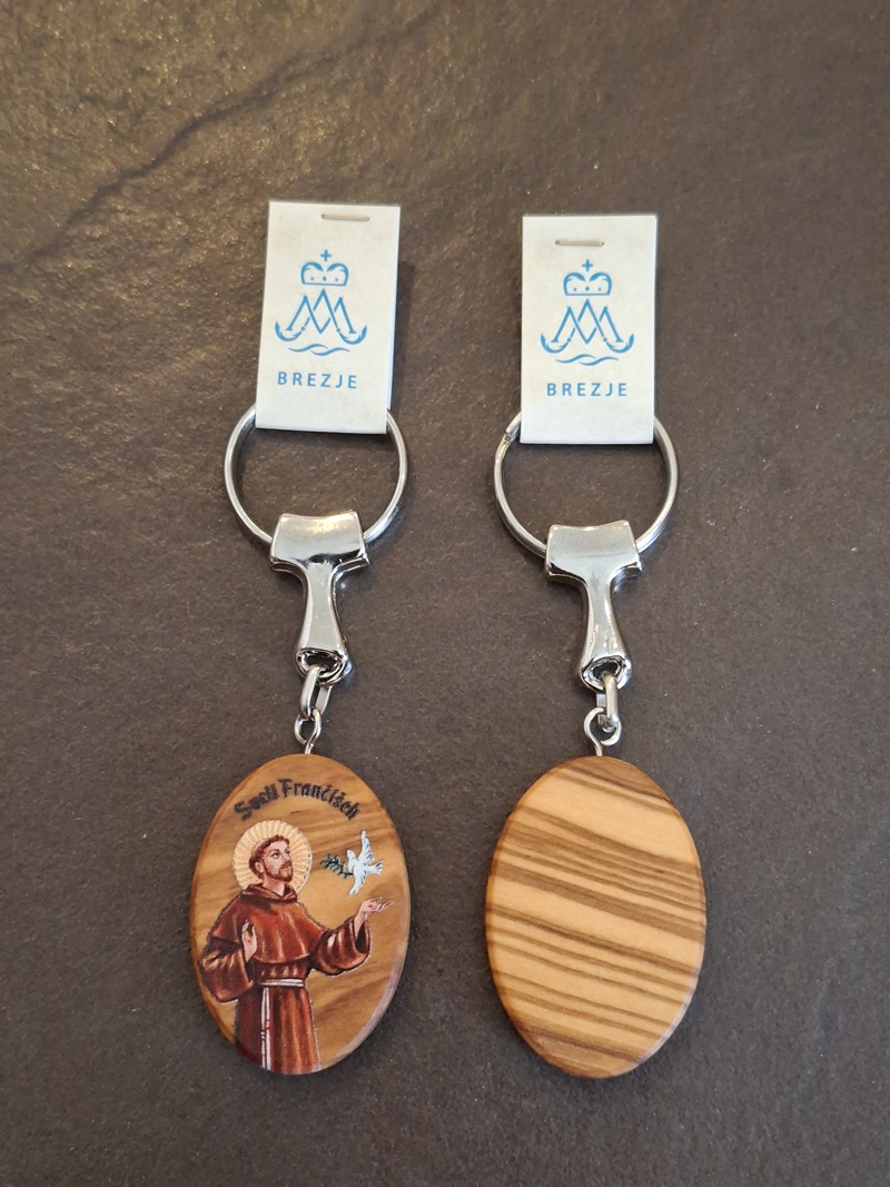 Komplet podobice sv. Frančiška Asiškega in obeska za ključe iz oljčnega lesa združuje duhovno sporoč.....